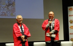 登壇者は、鈴木敏夫スタジオジブリ代表取締役プロデューサー、鵜之澤伸バンダイナムコホールディングス執行役員ら。ハッピ姿で登場した鈴木氏は、「鵜之澤さんとのくされ縁から、本企画を行った。鵜之澤さんは、81年にこの業界に入った。当時の僕は、徳間書店の編集者だった。35年の付き合いだ。でも、毎日顔を合わせていたわけでもないし、果たして本当にお世話になっていたのかなとも思っている(笑)」と、ジョークを交えながら馴れ初めを語り、「今回の話の前に、『太鼓の達人』にトトロの曲を使いたいという申し出があった。方々からそういった依頼があったが、音楽に関しては、全てお断りしていた。ところがこの顔(鵜之澤氏を指しながら)で言われたら、色々思い出してしまった。その一件以来再び関係が続いた。で、今回、15周年にあたって、映像を作るに至った。こういった仕事は本当に初めてのことだ」と続け、詳しく語った。