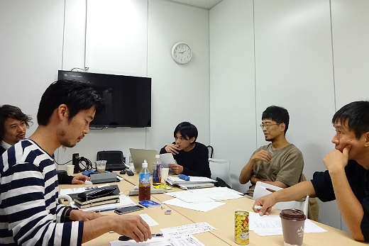監督同士の話し合いは現在進行中。第1回では「どういうオムニバスにするのか」を議論。別々の5本の連なりで構成させるのではなく、1つの物語として長編映画を制作することが決まった。第2回では物語の中心を据えるべく、5人が企画案を提出し、プレゼンテーションの末、加瀬監督の案が採用された。第3回では各プロット提出とパート決め。11月10日、第4回が東劇ビル2Fにある会議室で行われた。各プロットを基に、「ドラマ性をもっと…」「例えば…」「全体を考えると…」など入念に議論され、5人が1本の映画を目指していく様子が窺えた。なお12月7日14時から(予定)、同ビル2Fホールで、WS参加希望者向けの説明会が行われる。