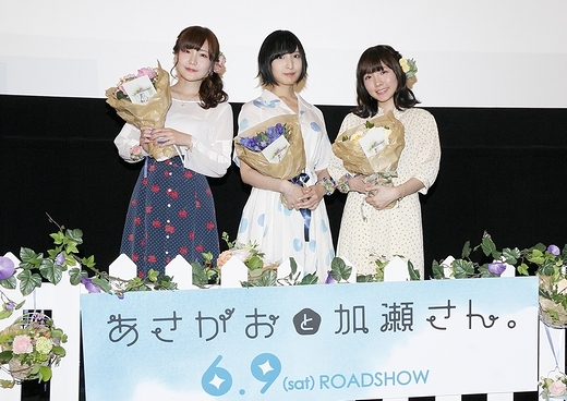 株式会社ガイエ:①パブリシスト(オンライン/オフライン:テレビ・紙パブリシスト募集!)②SNSプランナー③宣伝プロデューサー ポニーキャニオン配給のアニメーション映画『あさがおと加瀬さん。』の完成披露上映会イベントが17日、新宿バルト9で行われ、声優の高橋未奈美、佐倉綾音、木戸衣吹が登壇した。