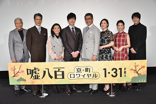 ギャガ配給『嘘八百 京町ロワイヤル』の完成披露舞台挨拶が20日、TOHOシネマズ六本木ヒルズで行われ、出演の中井貴一、佐々木蔵之介、広末涼子、友近、森川葵、山田裕貴、竜雷太、加藤雅也が出席した。
