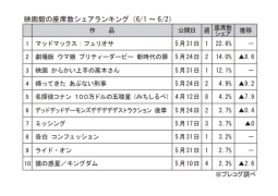 株式会社ガイエ:①パブリシスト(オンライン/オフライン:テレビ・紙パブリシスト募集!)②SNSプランナー③宣伝プロデューサー プレコグ調べによる、週末2日間(6月1~2日)の「映画館の座席数シェア」が表の通りまとまった。このランキングは、土日2日間に上映された「延べ座席数」(延べ上映回数×上映スクリーンの座席数)における、各作品のシェアを算出したもの。