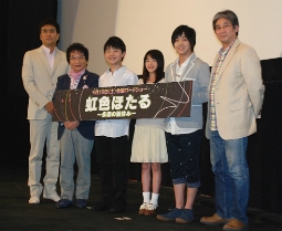 株式会社ガイエ:①パブリシスト(オンライン/オフライン:テレビ・紙パブリシスト募集!)②SNSプランナー③宣伝プロデューサー 東映アニメーション製作のオリジナルアニメーション映画「虹色ほたる~永遠の夏休み~」(配給:東映)の完成披露試写会が7日夜、新宿バルト9で行われ、宇田鋼之介監督、声優を務めた武井証、木村彩由実、新田海統が舞台挨拶に登壇した。