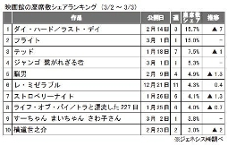 なお、2月25日にアカデミー賞授賞式が行われ、作品賞を受賞した公開19週目『アルゴ』(1・6%)が先週から1・4ポイント増で16位となった。ランキング詳細などは、Webサービス「文化通信.Pro」にもアップ。
