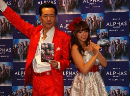 特殊能力者=アルファたちの戦いを描くドラマの内容にちなみに、篠崎は世の男性を惑わすセクシーな能力者、原は田原俊彦などビッグスターに擬態する能力者として、1日限りのチーム「アルファズ」を結成。篠崎は魅力的なポージング、原はモノマネを披露し、報道陣に作品をアピール。内容については「1話完結で観やすい。色々なアルファが出てきて面白いし、毎日徹夜で観てしまいそう」(篠崎)、「悪の組織 “赤い旗” を倒していく過程が面白い」(原)などとコメントした。
