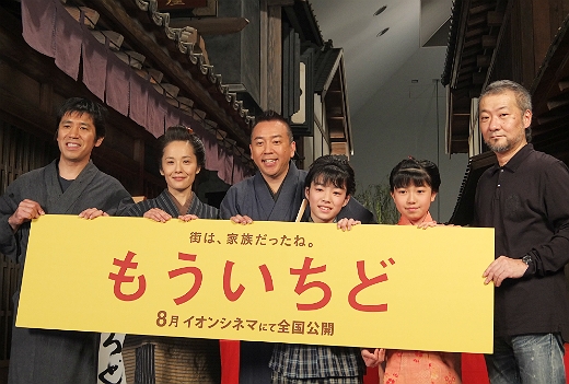 マイシアター+ライブ・ビューイング・ジャパン配給の映画『もういちど』(製作:マイシアター+ライブ・ビューイング・ジャパン+イオンエンターテイメント+文化放送+レスパスビジョン)の製作現場会見が14日、東京の深川江戸資料館で行われ、企画・主演の林家たい平、板屋宏幸監督、出演の富田靖子、ゴリ(ガレッジセール)、福崎那由他、大野百花が登壇した。